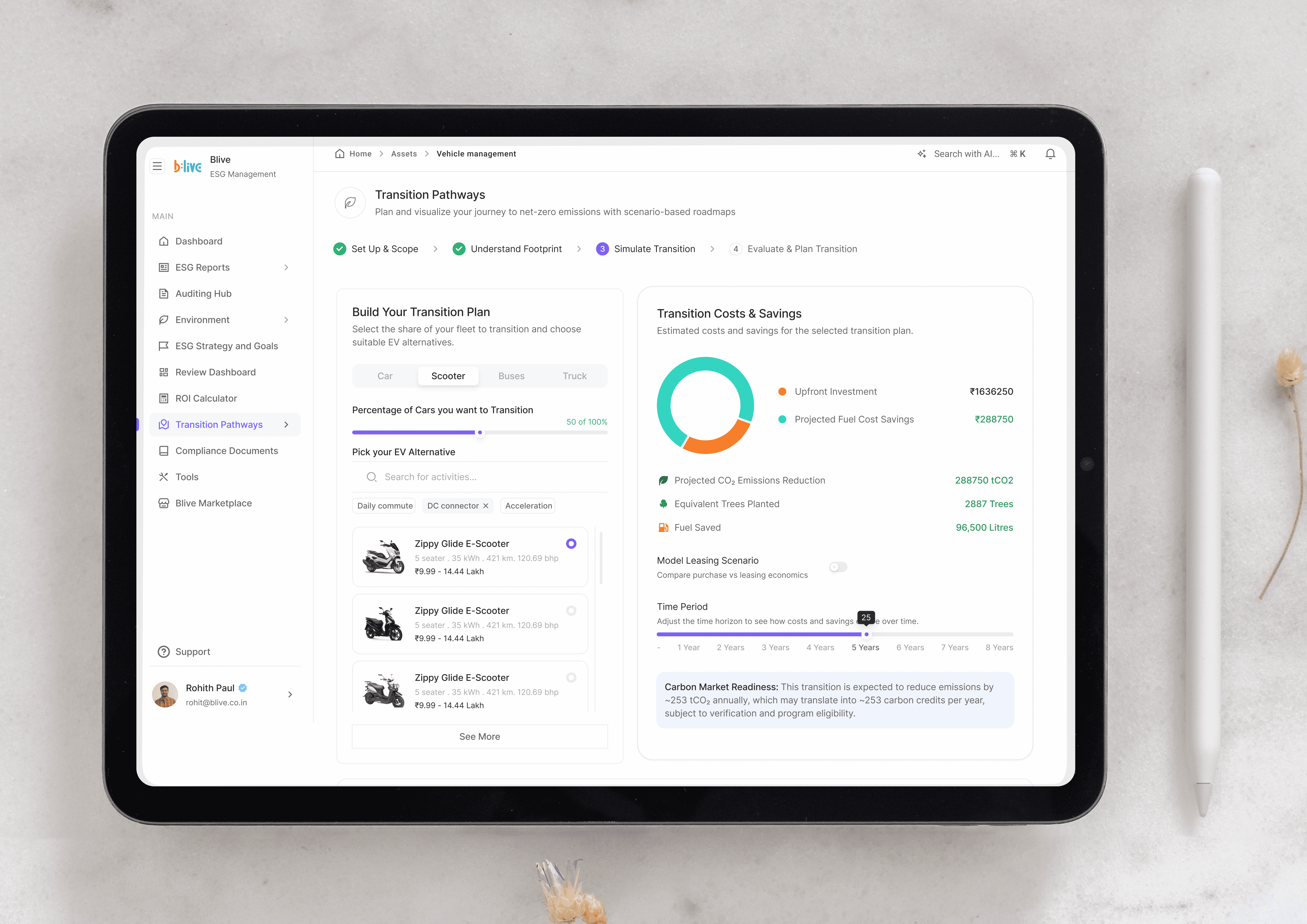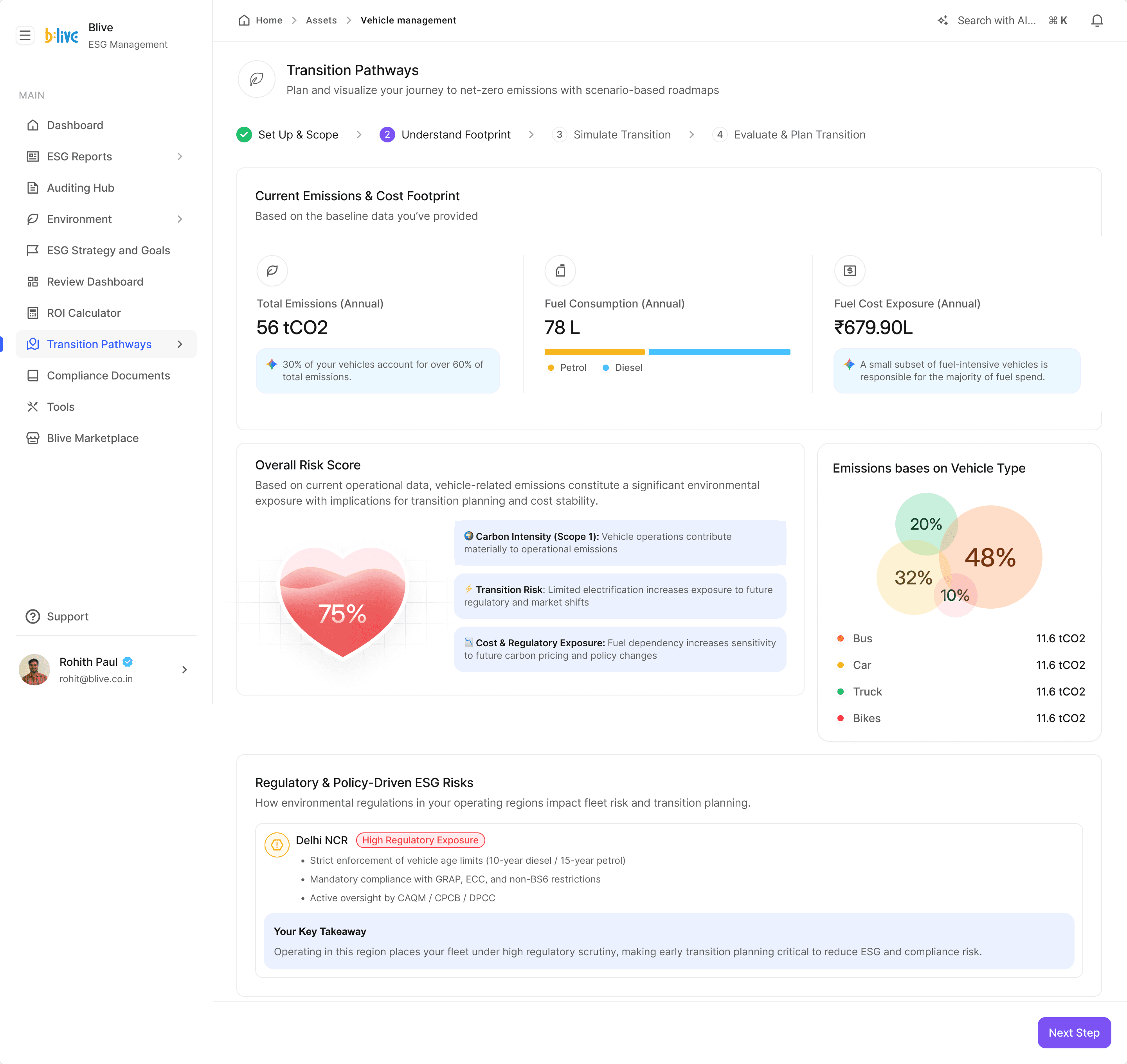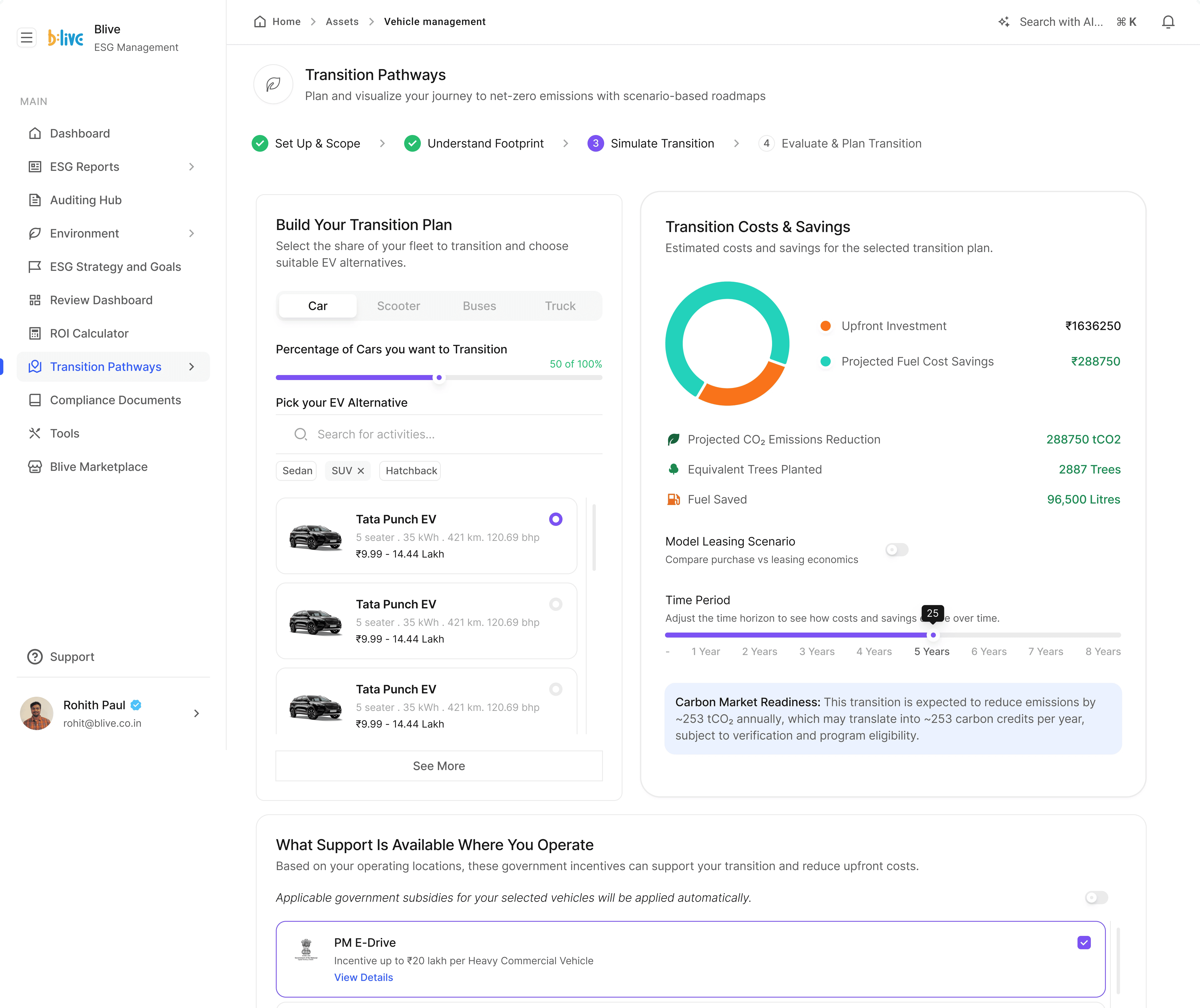 Blive is a quick commerce delivery partner platform focused on electric two-wheeler logistics. Their distributed fleet operations made them an ideal testing ground for our emissions tracking, ESG data collection, and validator integration features.